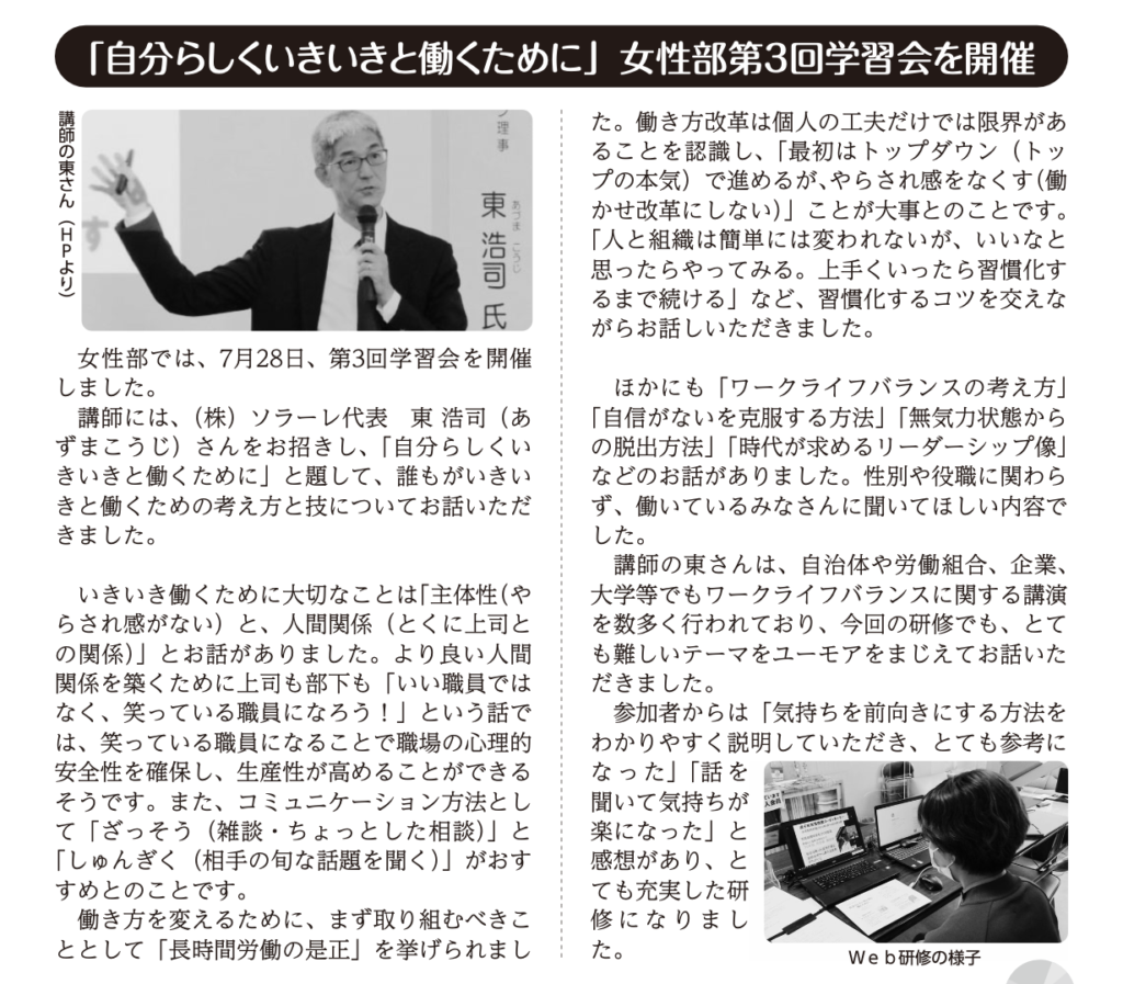 「自分らしくいきいきと働くために」女性部第3回学習会を開催