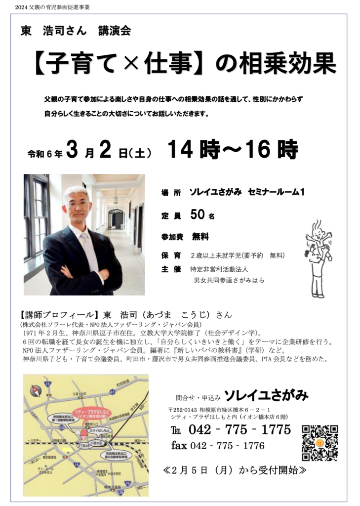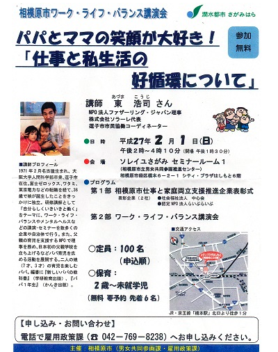 - 演題:男性の育児参画講座『「子育て×仕事」の相乗効果』