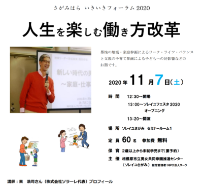 相模原市立男女共同参画センター(通称:ソレイユさがみ)で講演会をします。