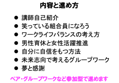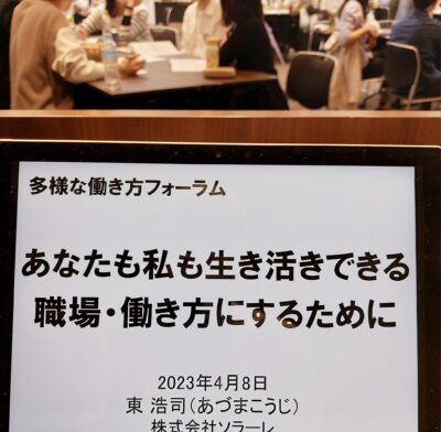 4月の土曜、都内の研修施設で労働組合が主催する「多様な働き方フォーラム」にてセミナーを行いました。
