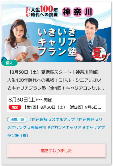 人生100年時代への挑戦!ミドル・シニアいきいきキャリアプラン塾