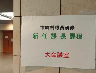 某県市町村の新任課長級を対象とした研修の講師を務めました。