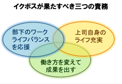 そして、メインテーマのイクボスをレクチャーしました。部下に対する姿勢や働きかけ方、働きやすい職場づくりなど具体的なノウハウをお伝えしました。