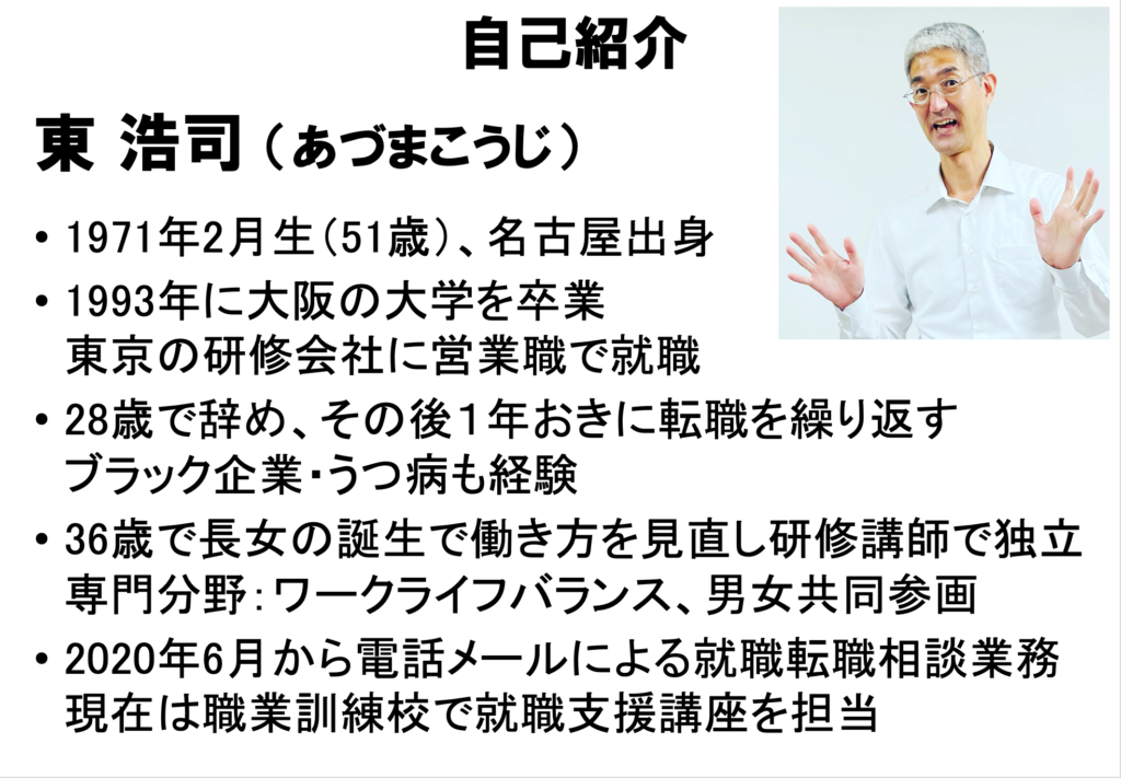 川崎市就職氷河期世代活躍応援事業の事務局がヒューマンアカデミー株式会社で、私は現在ヒューマンアカデミーが運営する職業訓練校の就職支援講座を担当しています。そうしたご縁で、本事業の中核となる短期セミナーの講師をする機会をいただきました。