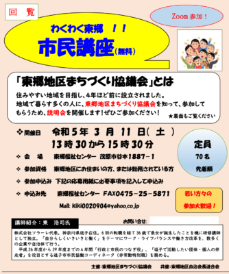 茂原市の東郷地区で「まちづくり協議会」の講師に招かれました。