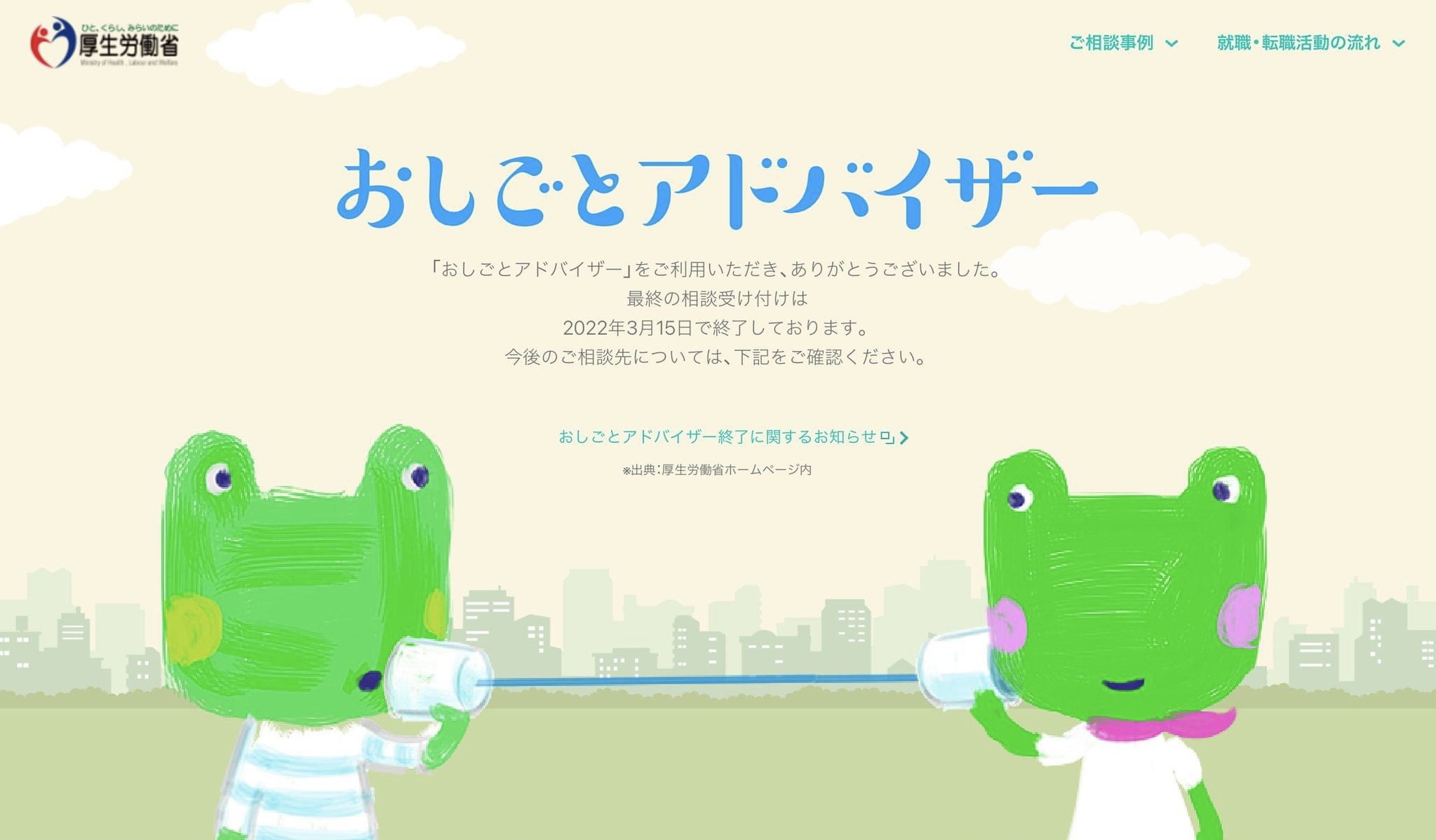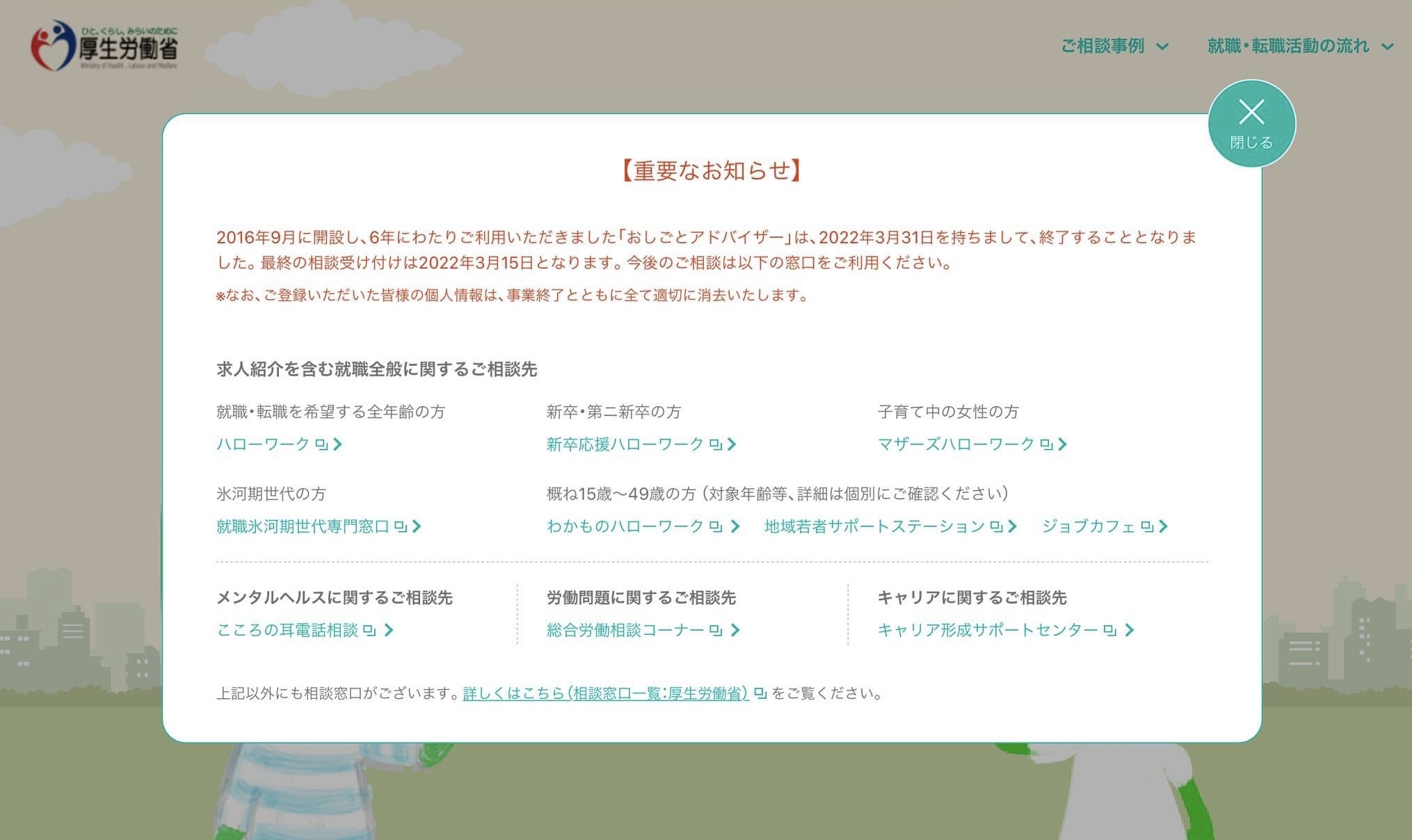 2022年3月まで厚生労働省委託事業の「おしごとアドバイザー」に従事しました。