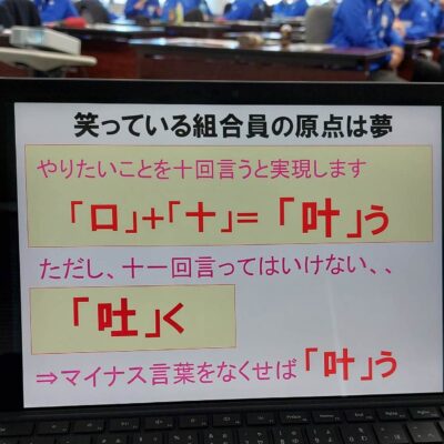 笑い声のたえないセミナーになり、最後は「笑っている組合員になろう!」のメッセージで締めくくりました。