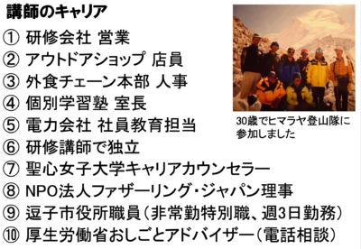 まずは、私自身のキャリアを紹介。「10回転職しても何となる!」と強調しました。