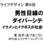 なんの動画で見たか忘れたが、「自分の子供を育てているだけなのになぜイクメンと言われるのか」という言葉が講義中、ふと思い出した。東さんも仰っていたが、イクメンは死語になる存在であることに同感だ。私の姉は子供が3人おり、小学5年生の時から甥っ子姪っ子を可愛がってきた。私が歳を重ねるにつれ、姉の育児の考え方などについて話したり聞いたりしてきた。私はまだ子供が出来たことはないので想像しかできないが、自分に子供ができたら可愛くてしょうがないと思う。そんな可愛い自分の子供の育児に関わるのが「イクメン」と言われるのはやはりおかしいと感じる。そんな言葉が流行るのも時代が関係している。その時代に争いながら活動を続けてきた東さんは本当にすごいと思うし、これからも頑張ってほしいと思った。